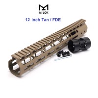 Trirock NSR Lightweight Tan/FDE 12 inch One Piece Style AR-15 System M-LOK Free Float AR15 Handguard with steel barrel nut