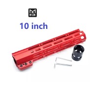 Trirock Clamp On Red Tactical 10 inch M-LOK handguard for AR15 M4 M16 with Steel Barrel Nut fits .223/5.56 rifles